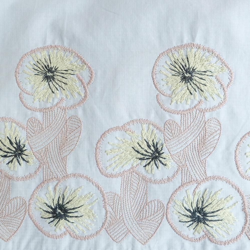 花の中心はボリュームのある2色の太い糸を使い、野に咲く花々の力強さが伝わってくるようです。