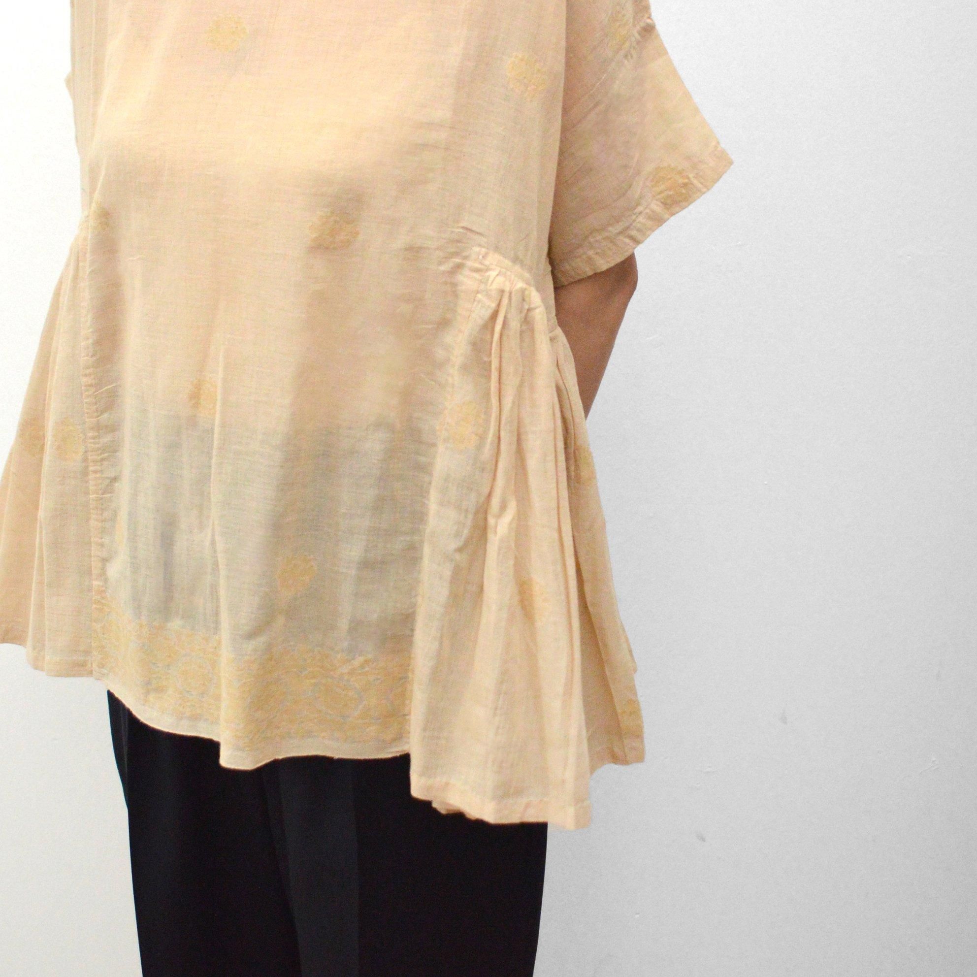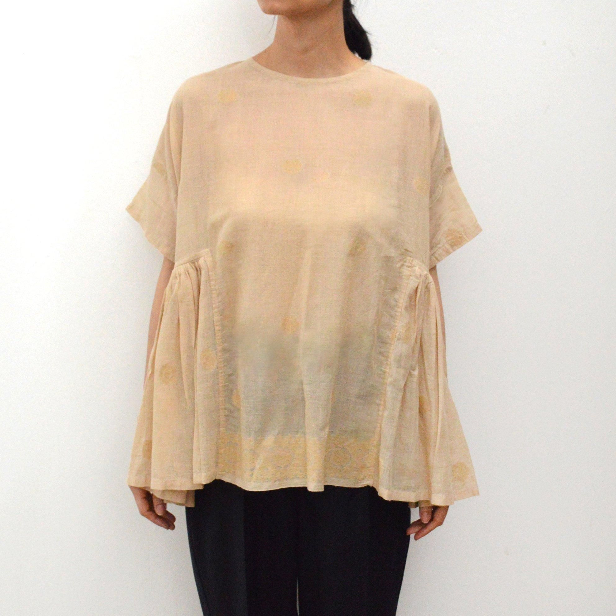 インドの伝統的な布「カディ」を使用して仕立てられた天然染のトップス。