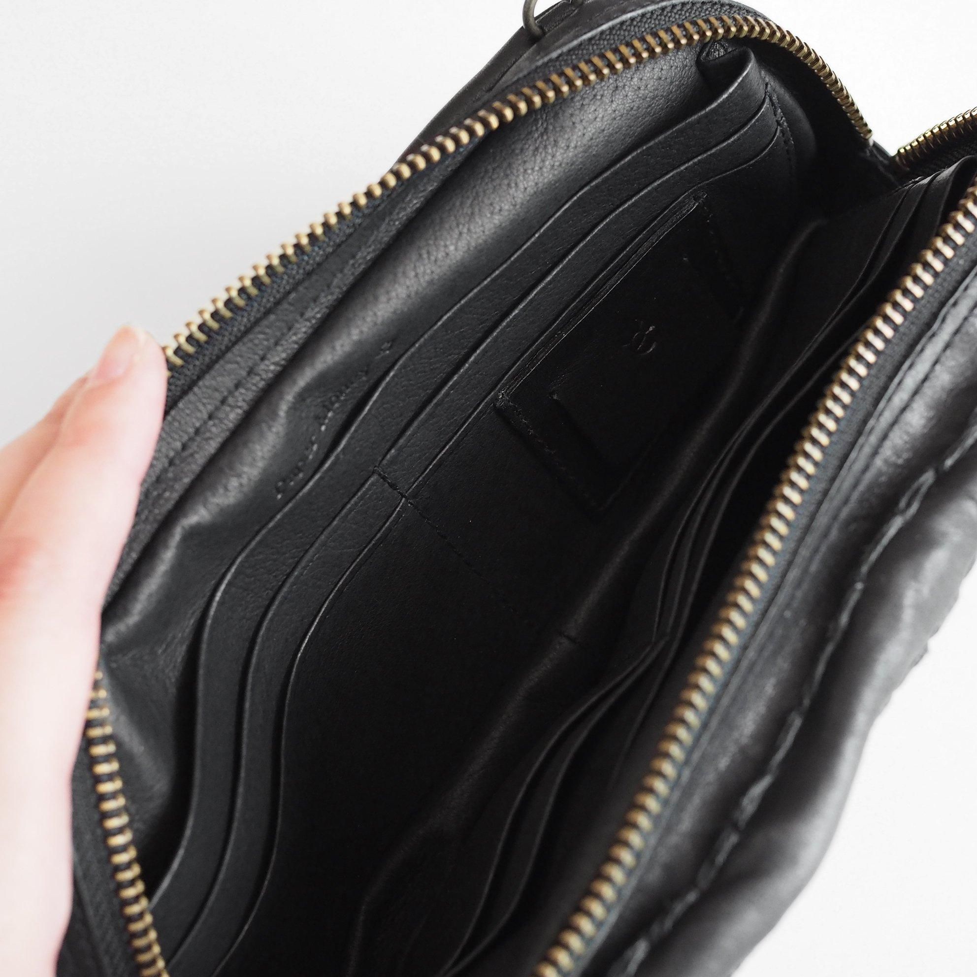 ポシェットのように肩からかけることのできるショルダーベルト付きです。