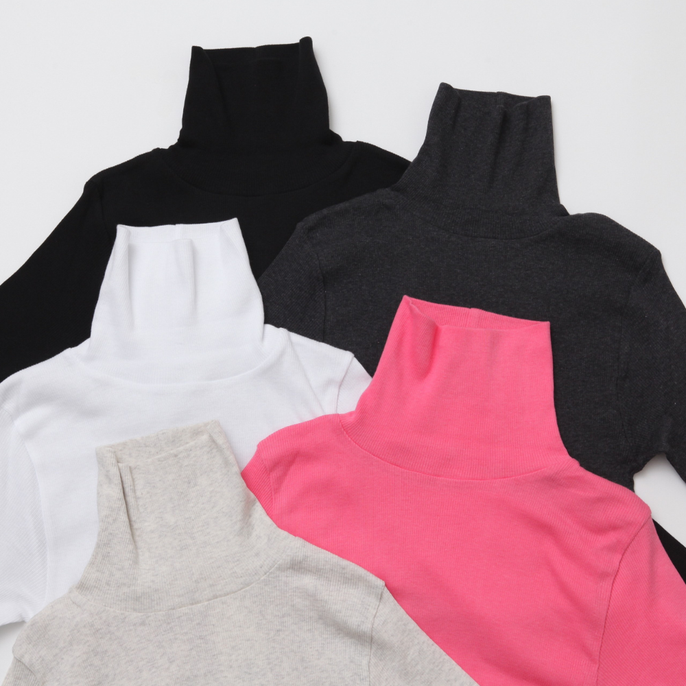 homspunのリブ生地で仕立てられたタートルネックプルオーバー。