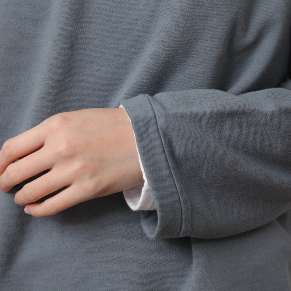 モデル身長は165cm、グレーはMサイズ、チャコールとネイビーはSサイズを着用しています。
