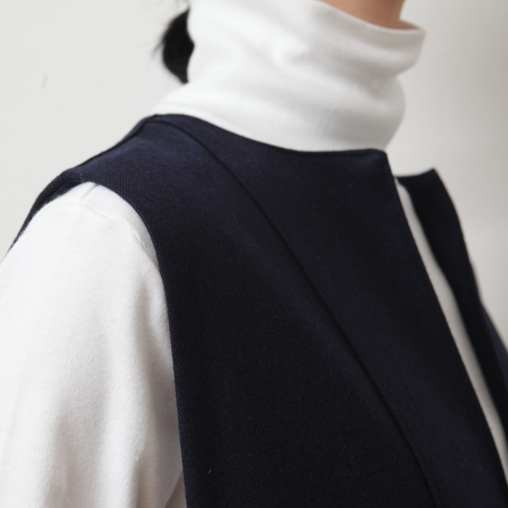 ポルトガルでワークウェアの生地を提供するメーカーのノウハウが息づいたウォッシャブルウールを採用しており、美しいメランジや上品な光沢が印象を高めています。