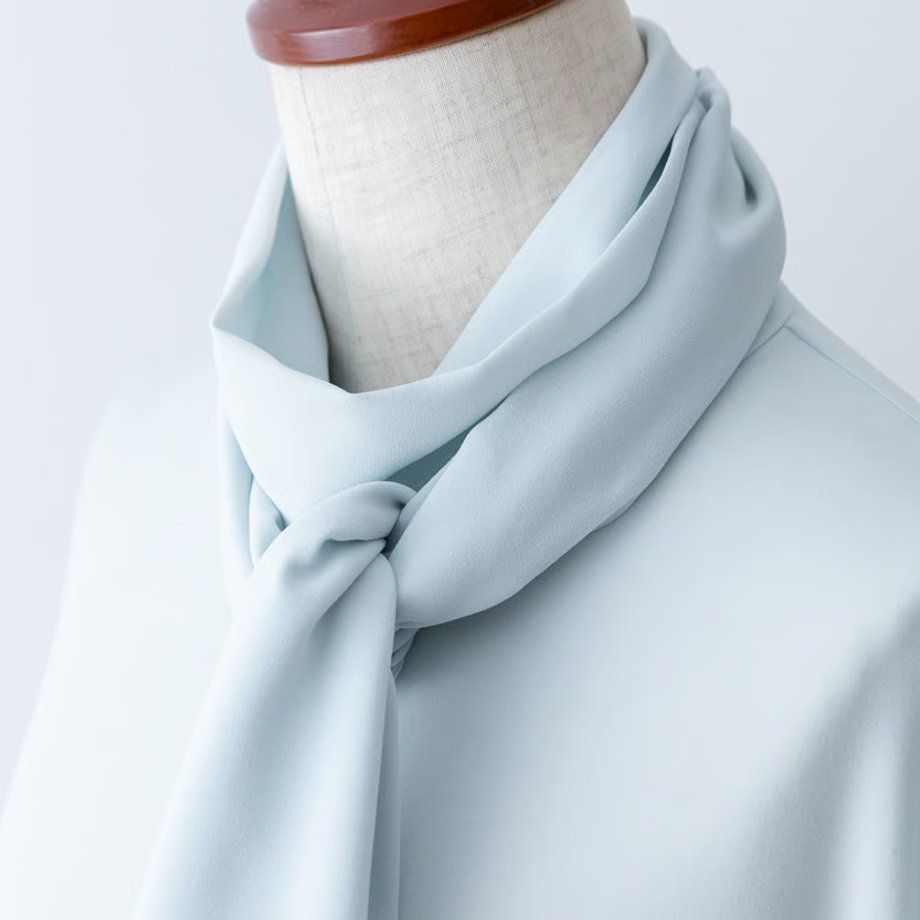 スカーフを外せば、えりもとが詰まり過ぎないクルーネックになります。