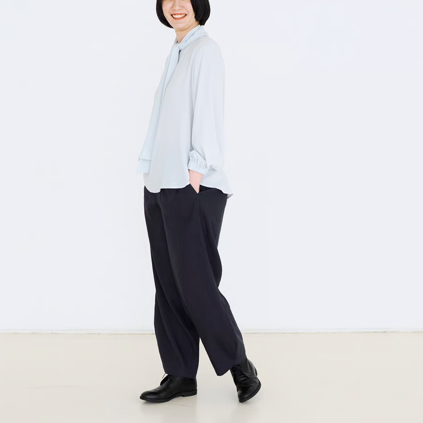 生地が柔らかいので、ジャケットの下に着るブラウスとしても、おすすめです。