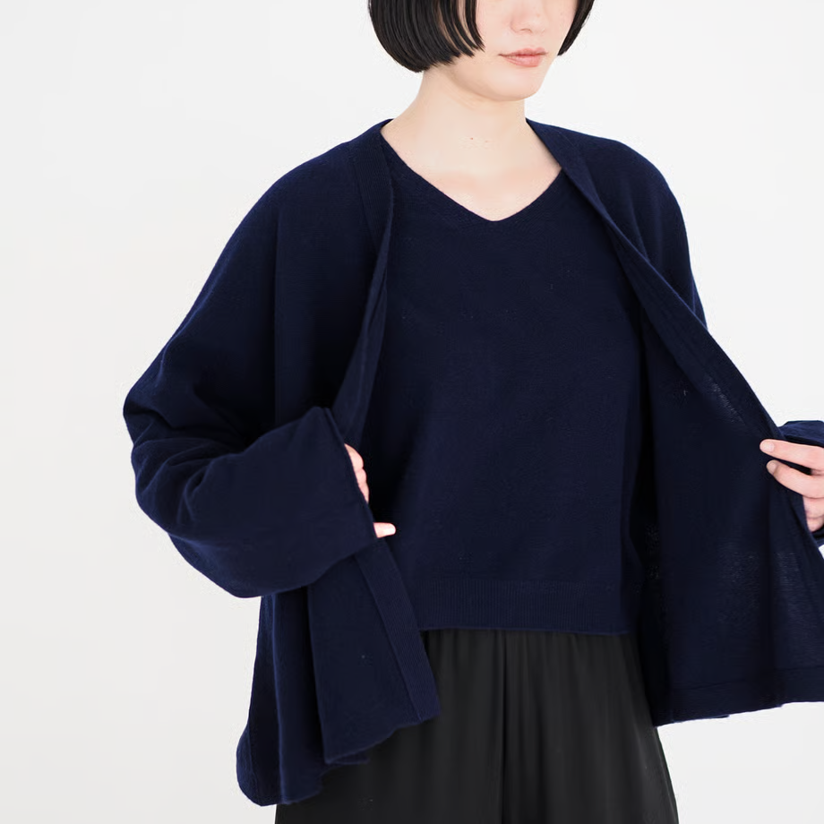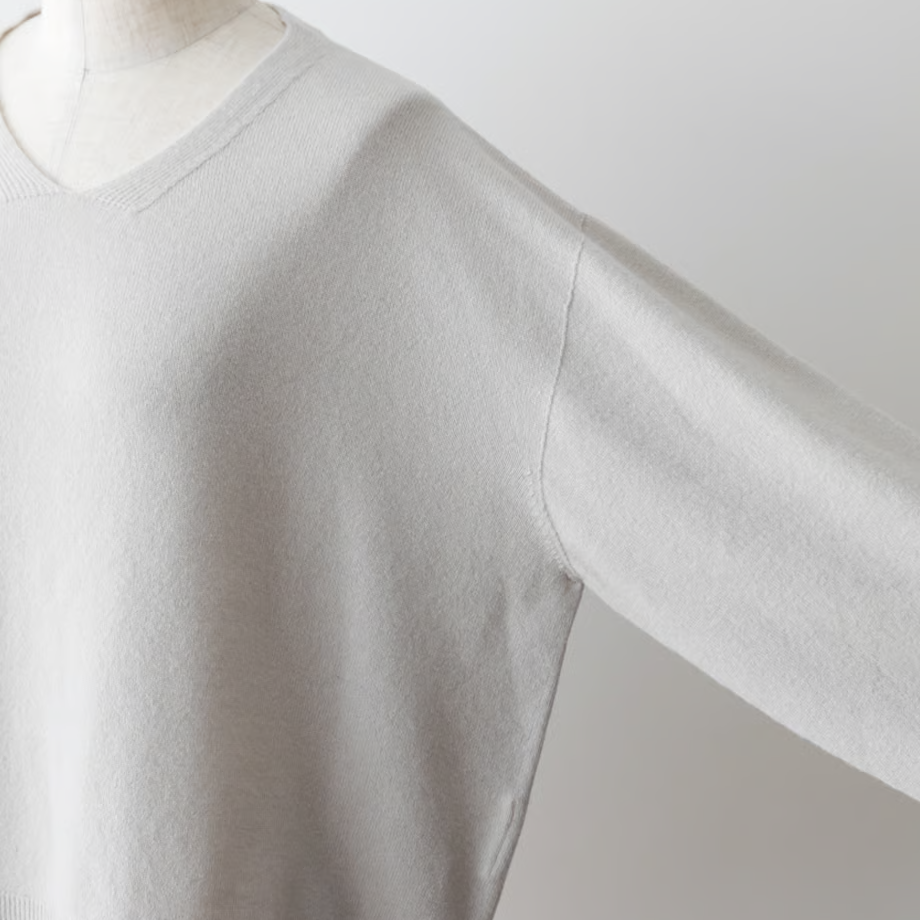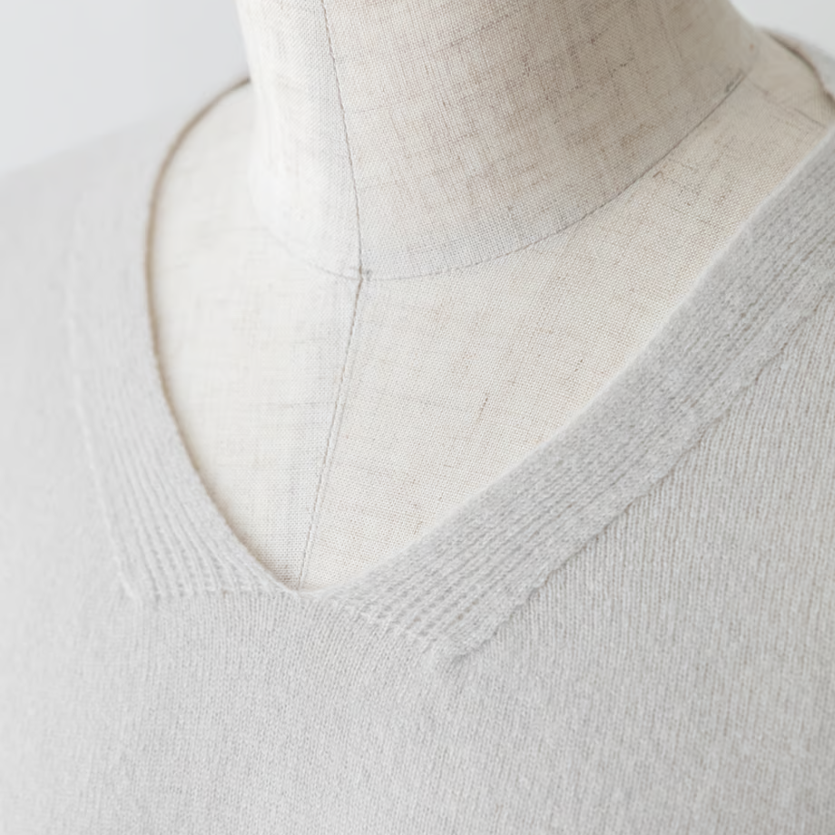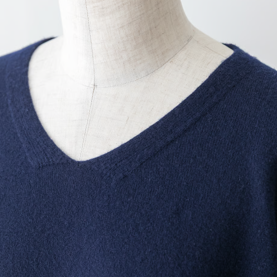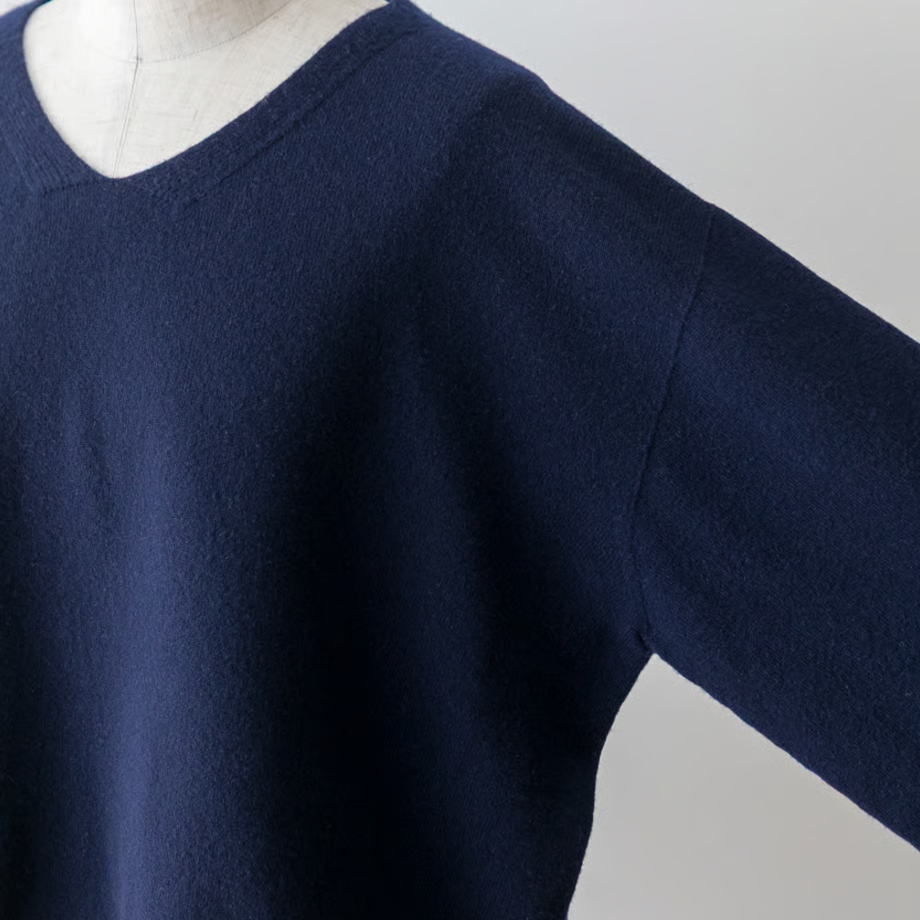 カシミヤ並みの細さの毛糸は、しっとりとして程よい弾力感がある肌触り。