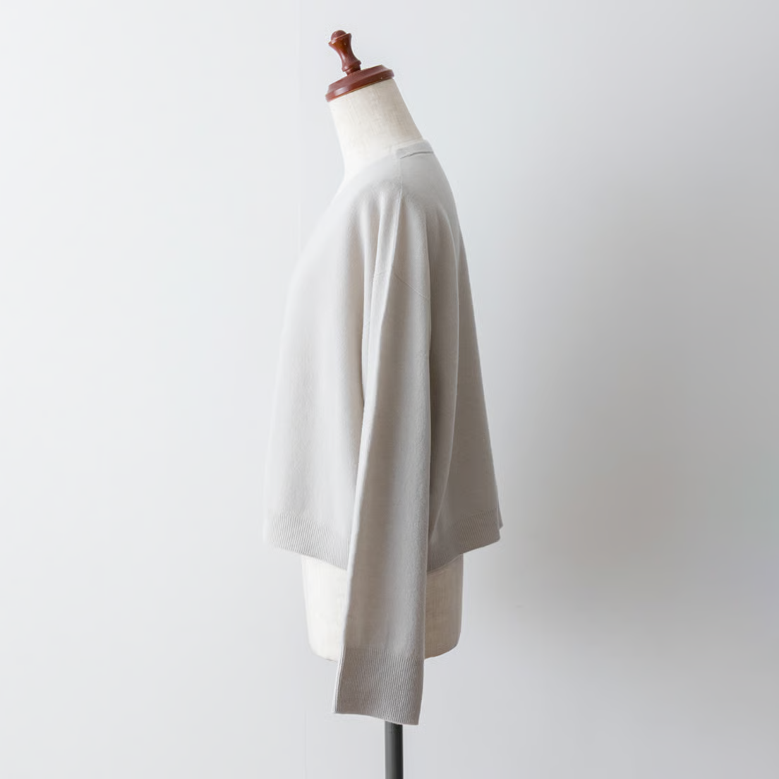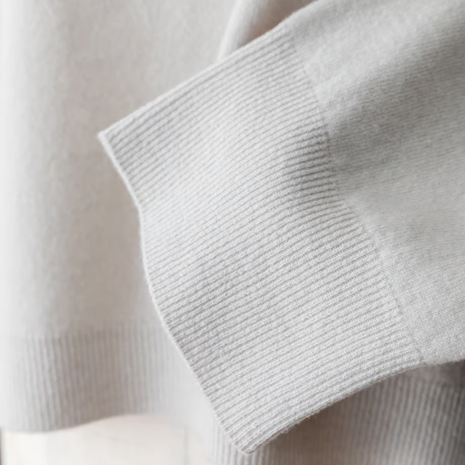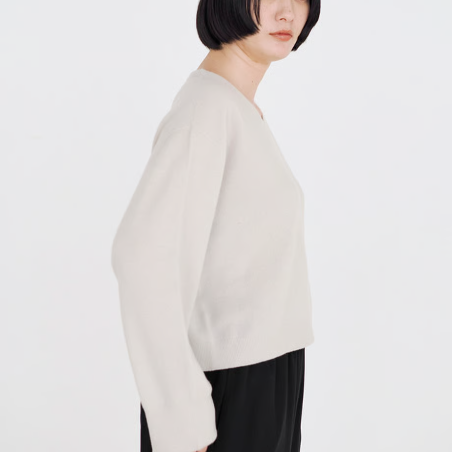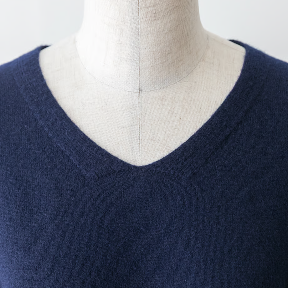 カシミヤ並みの細さの毛糸は、しっとりとして程よい弾力感がある肌触り。