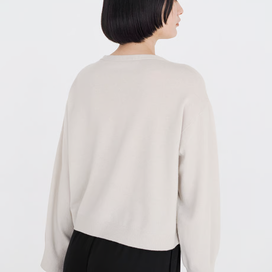 デザインはカジュアルで、素材は上質なウールを使ったシックなニットに仕上がりました。