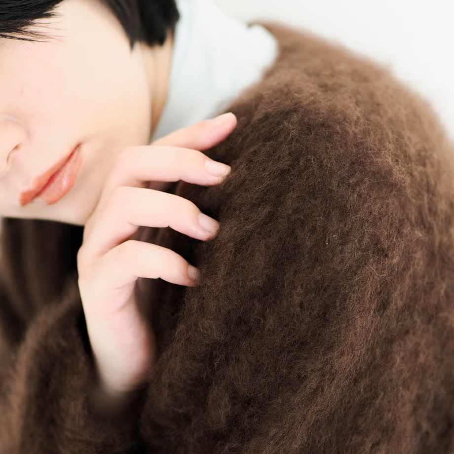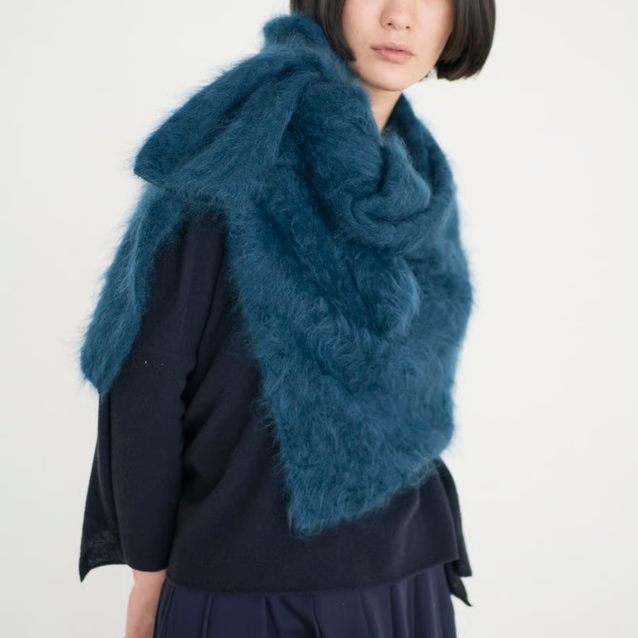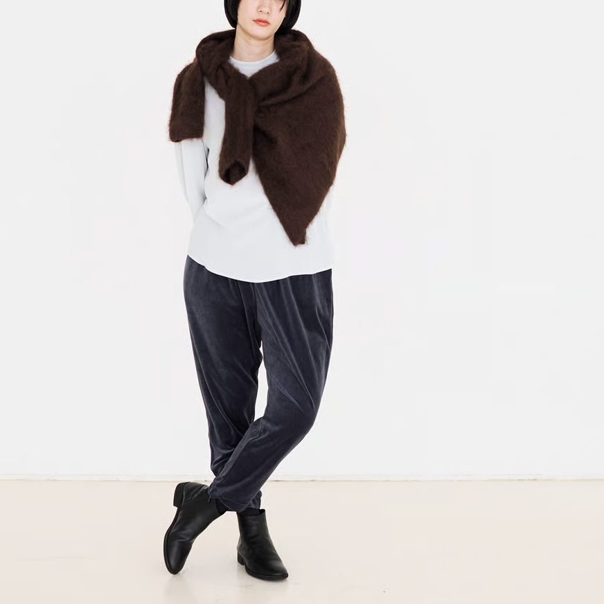 カシミヤ特有の風合いを最も醸し出す、特別な技術のファー加工を1枚1枚手作業で施し、より滑らかに毛足も出してふんわり仕上げました。