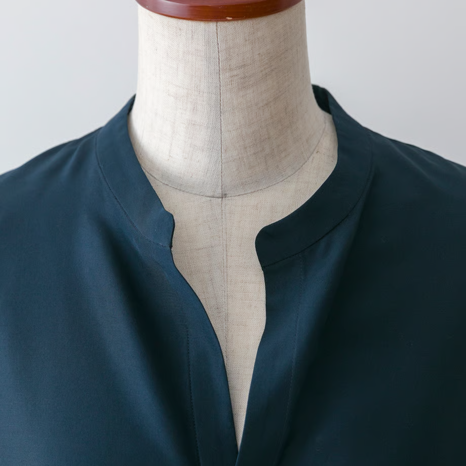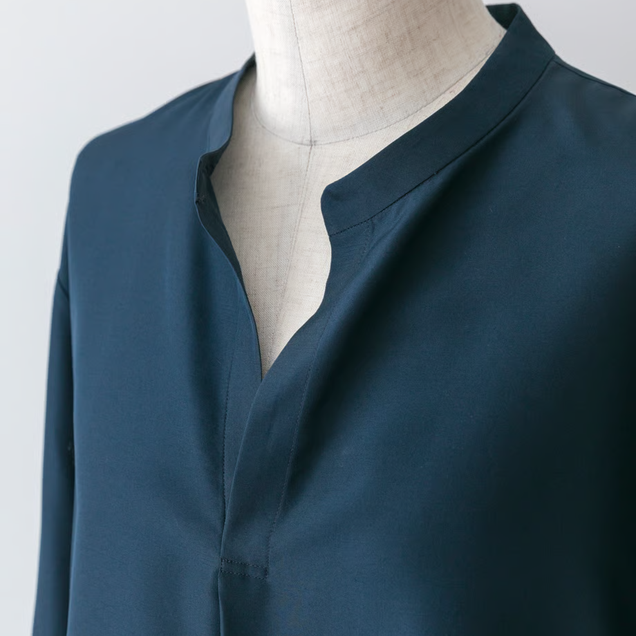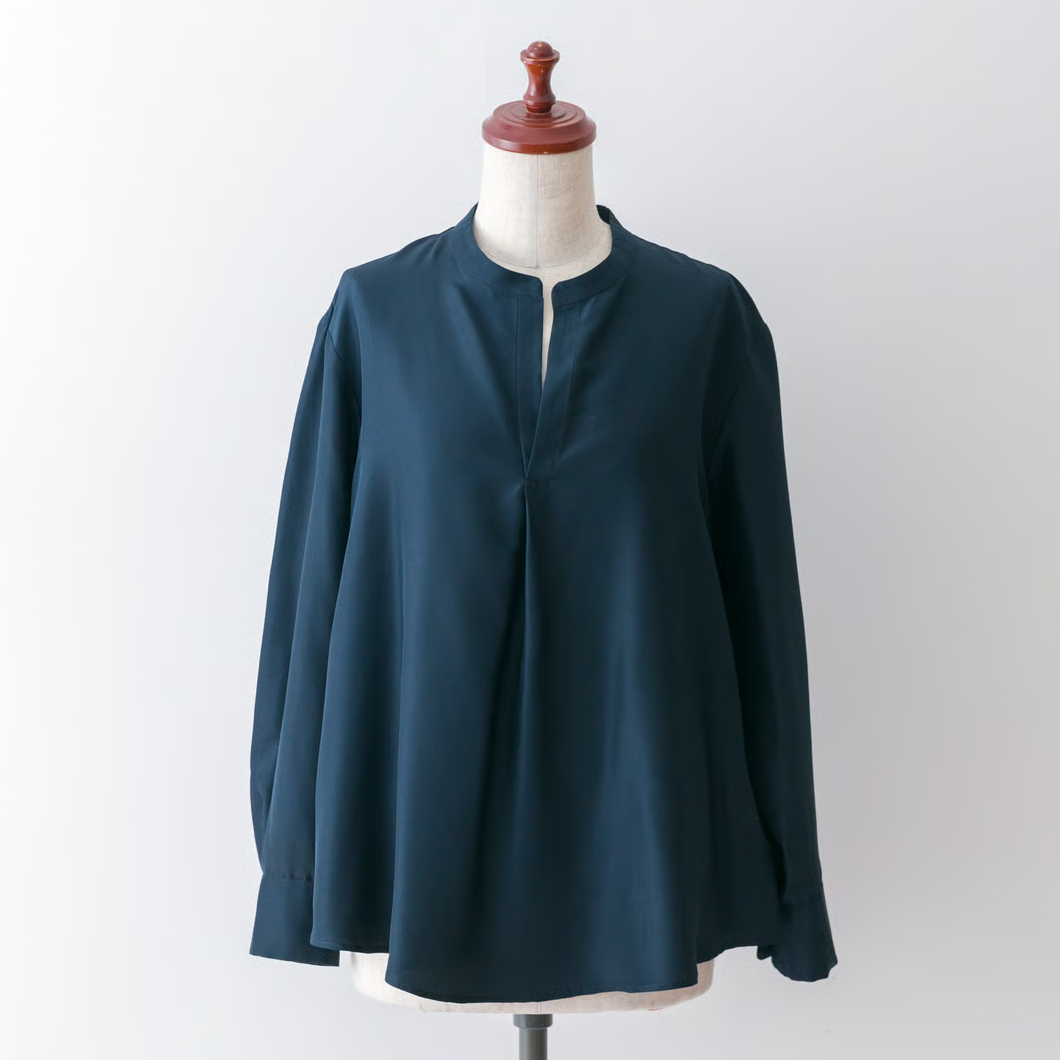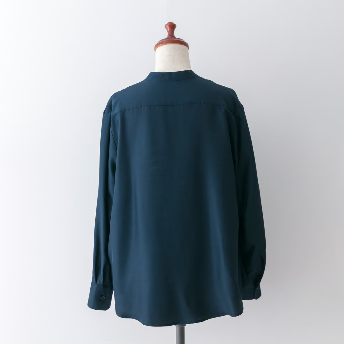 上質なシルクでスタンドカラーのスキッパーシャツを作りました。