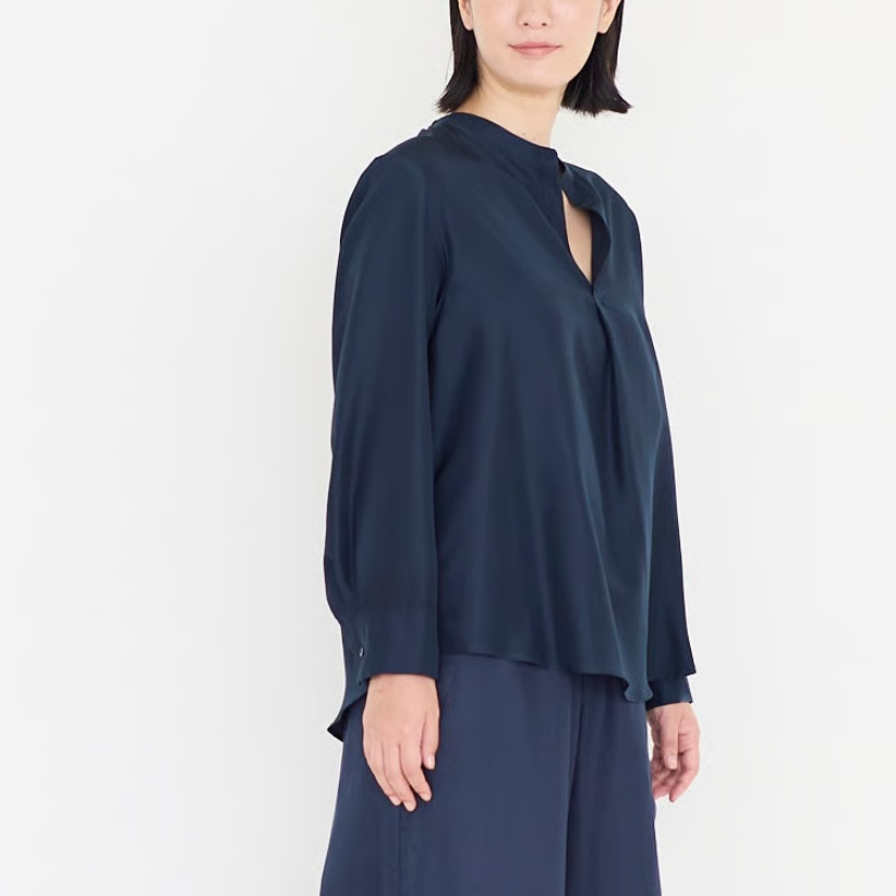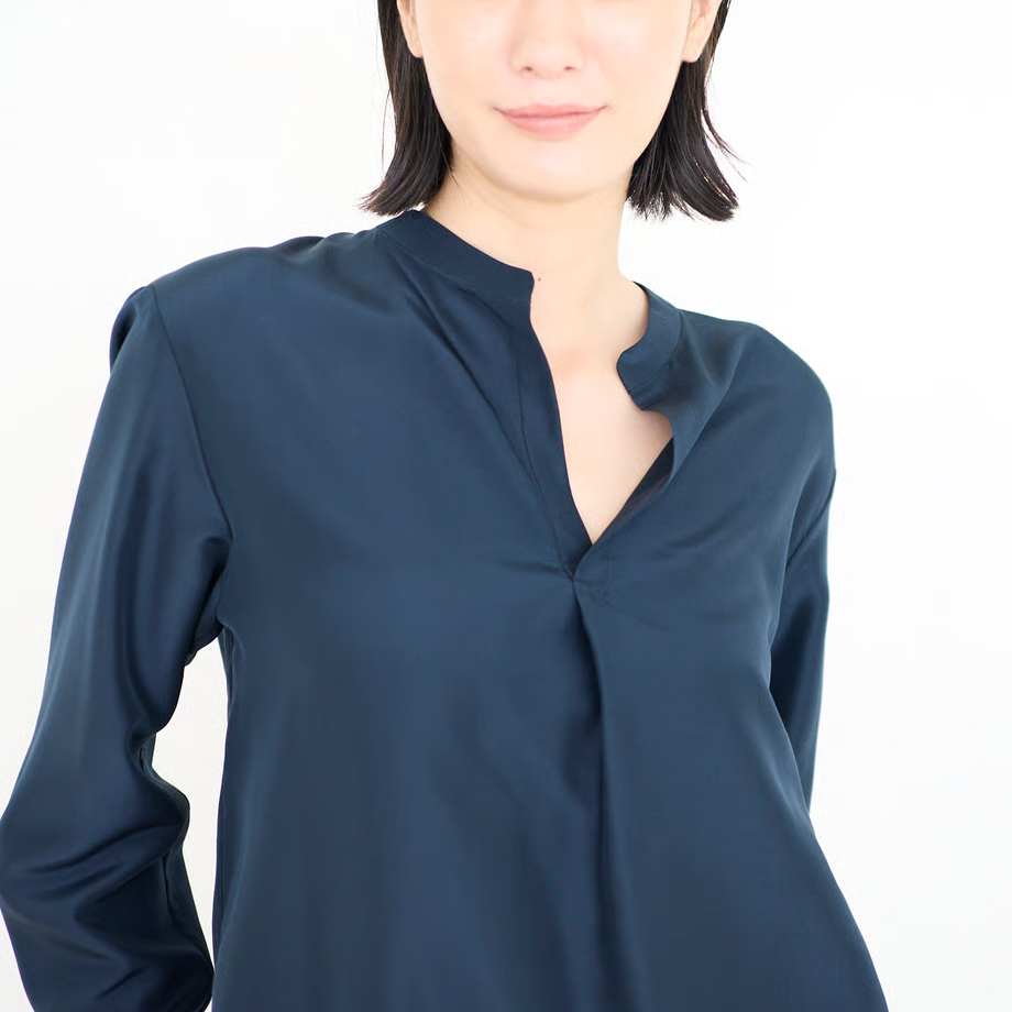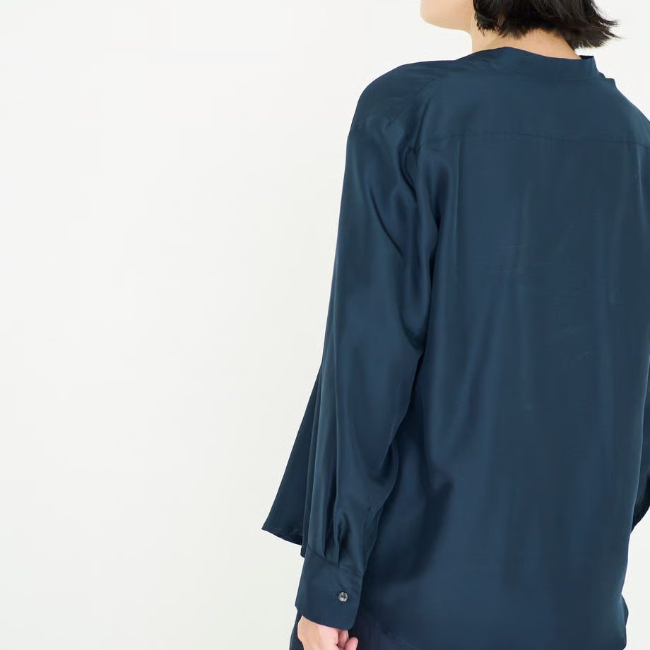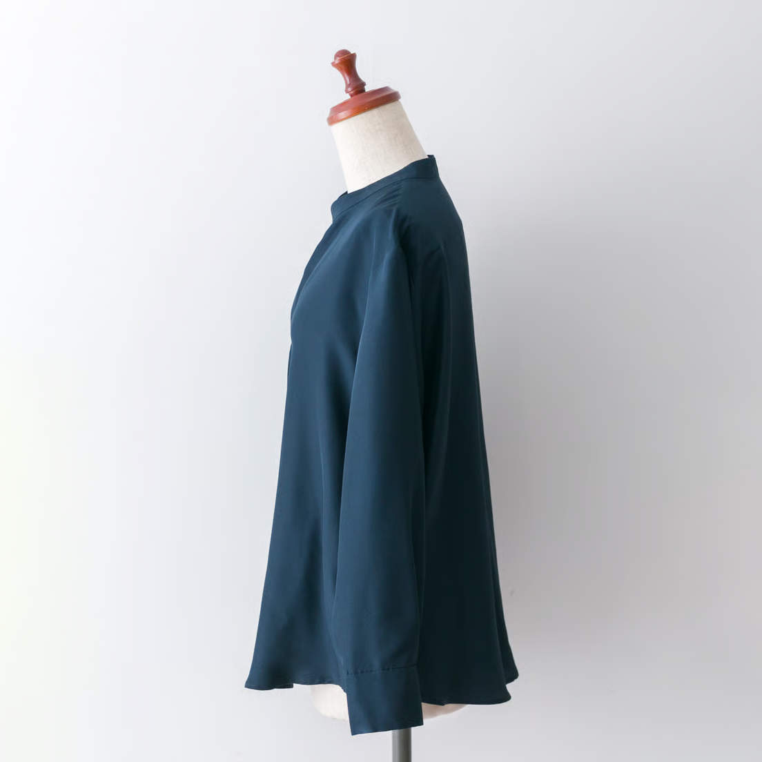 上質なシルクでスタンドカラーのスキッパーシャツを作りました。