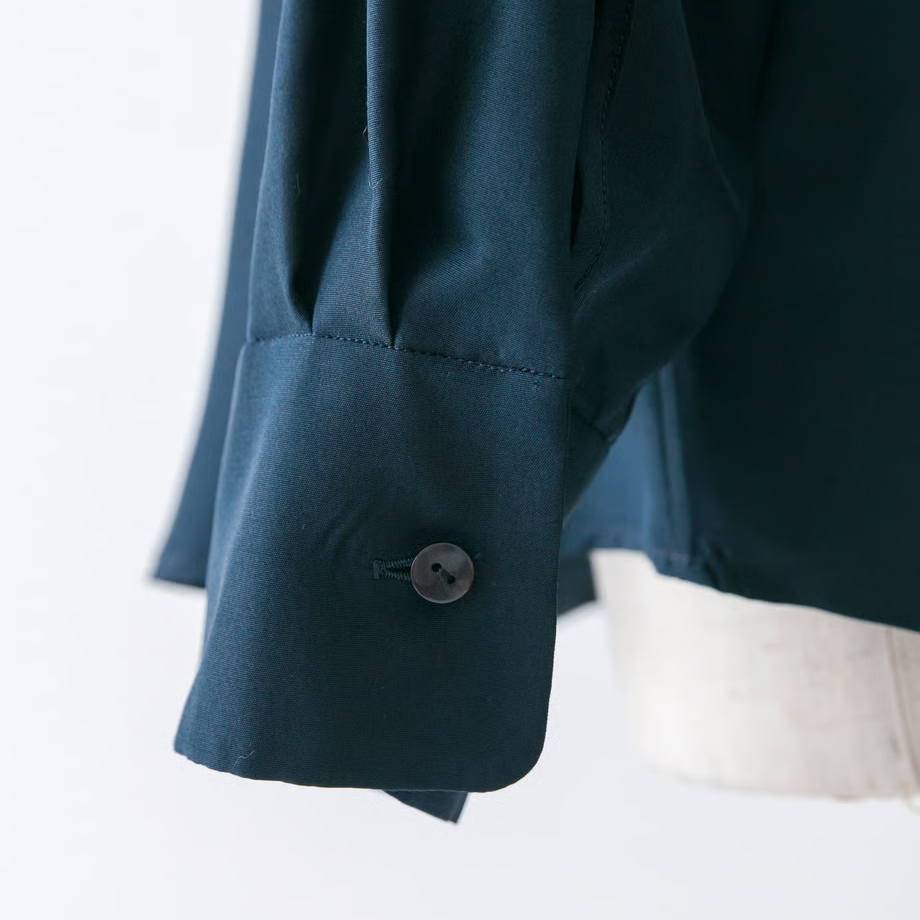 襟とカフスにステッチを入れず、エレガントなイメージに仕上げています。