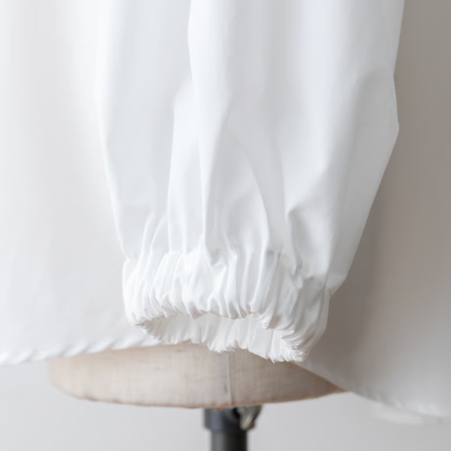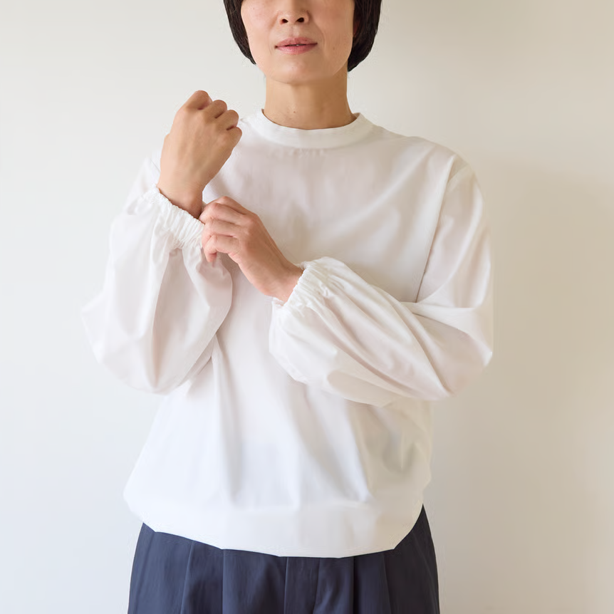 太めのギャザースリーブがアクセントで、袖口のゴムで袖丈を調整できます。