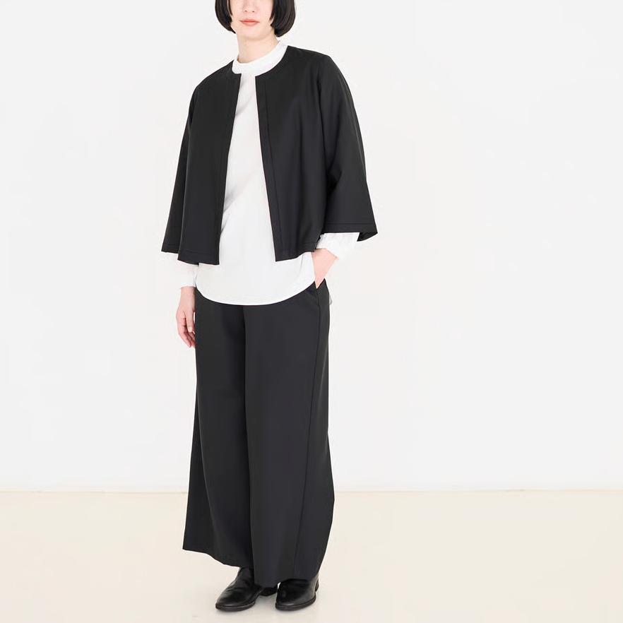 ジャケット、ベスト、カーディガンと、どんなアイテムでも合わせやすいブラウスです。