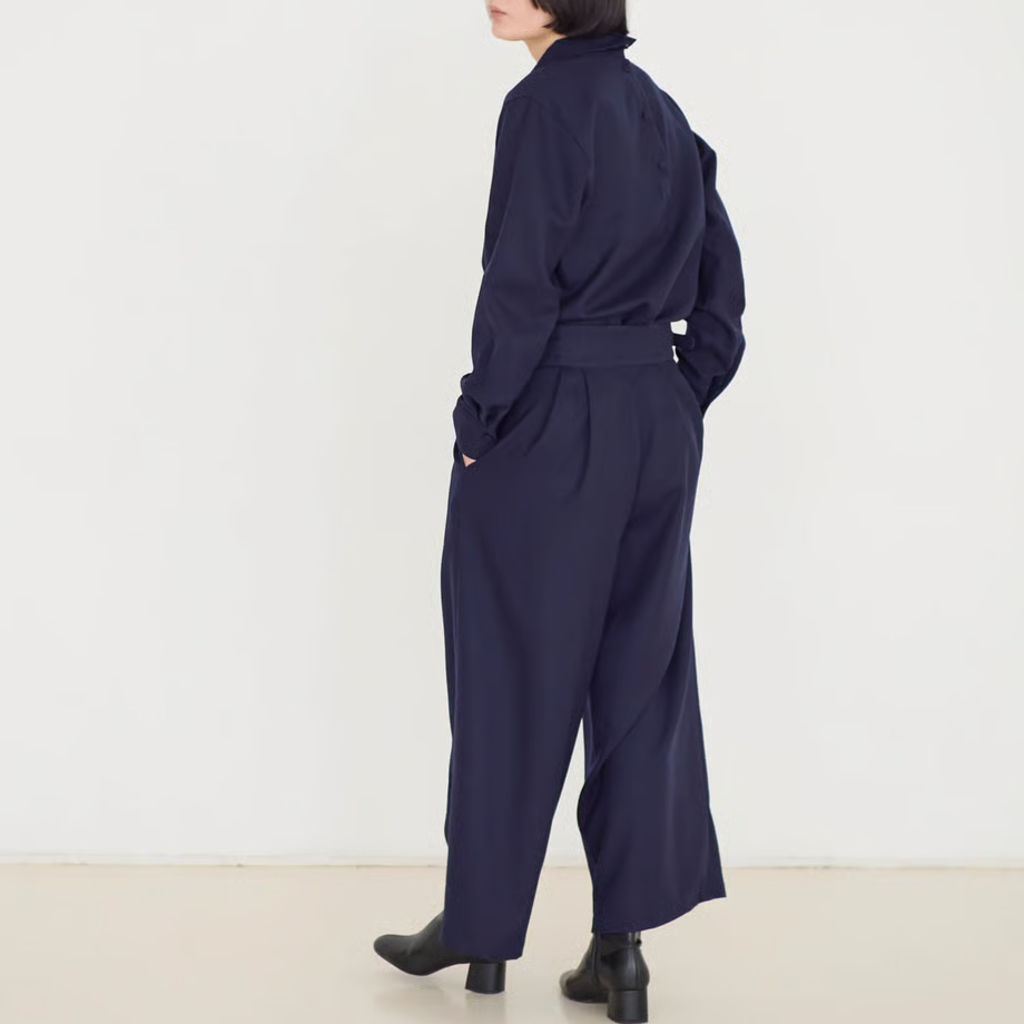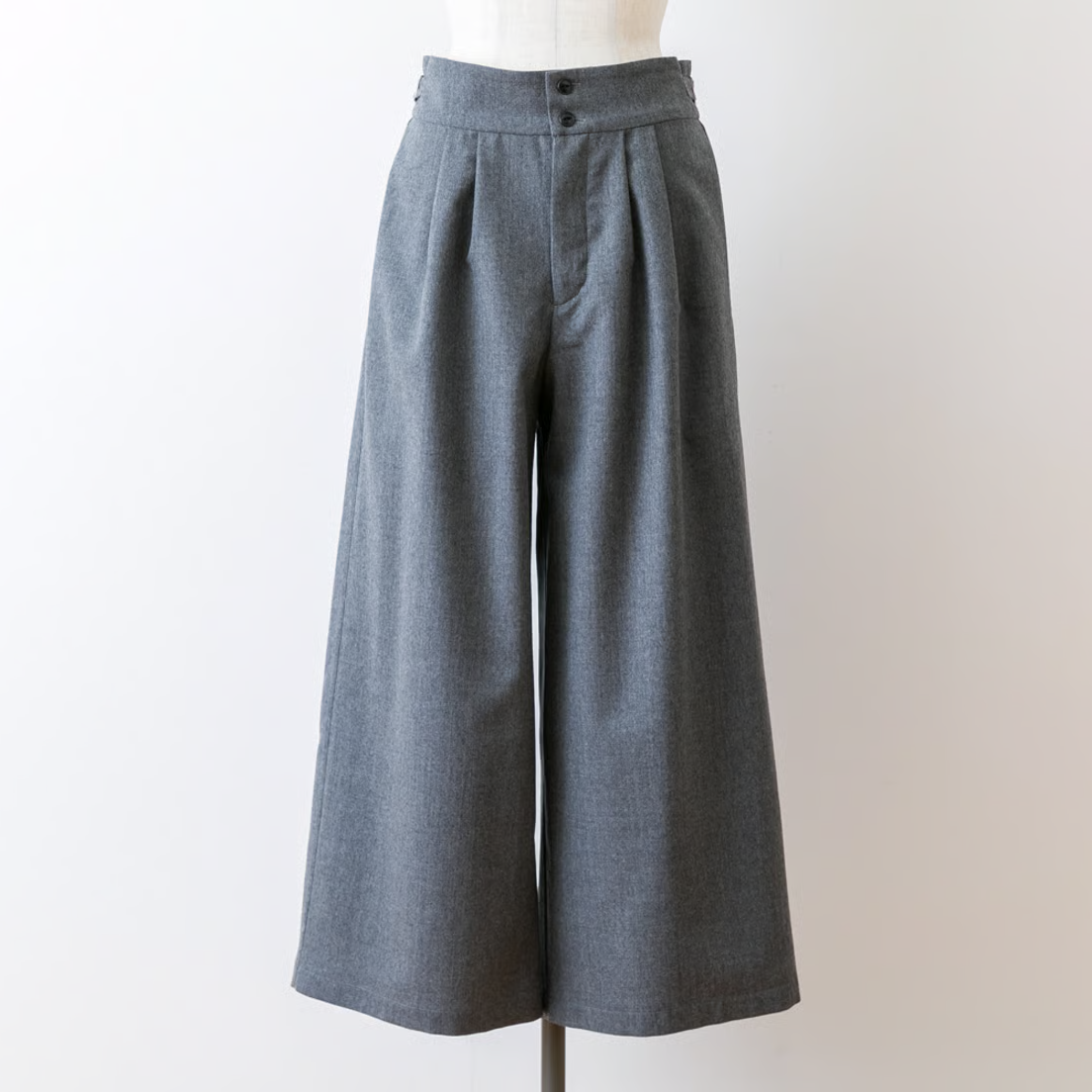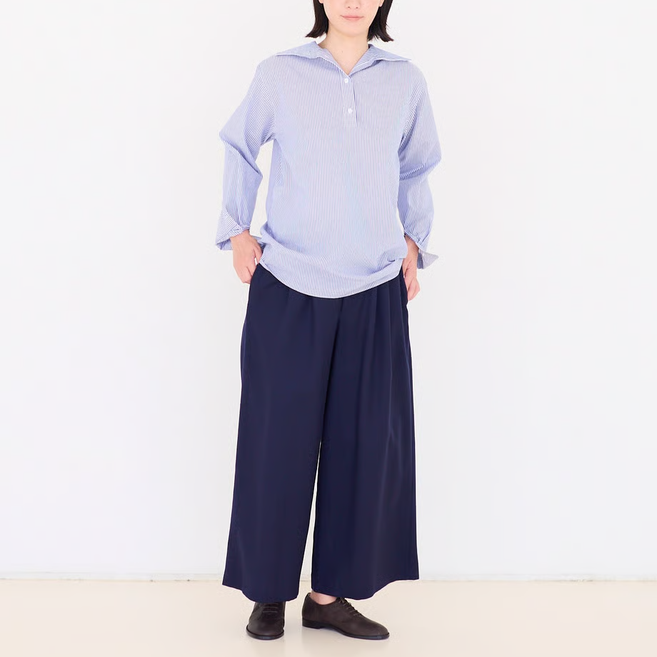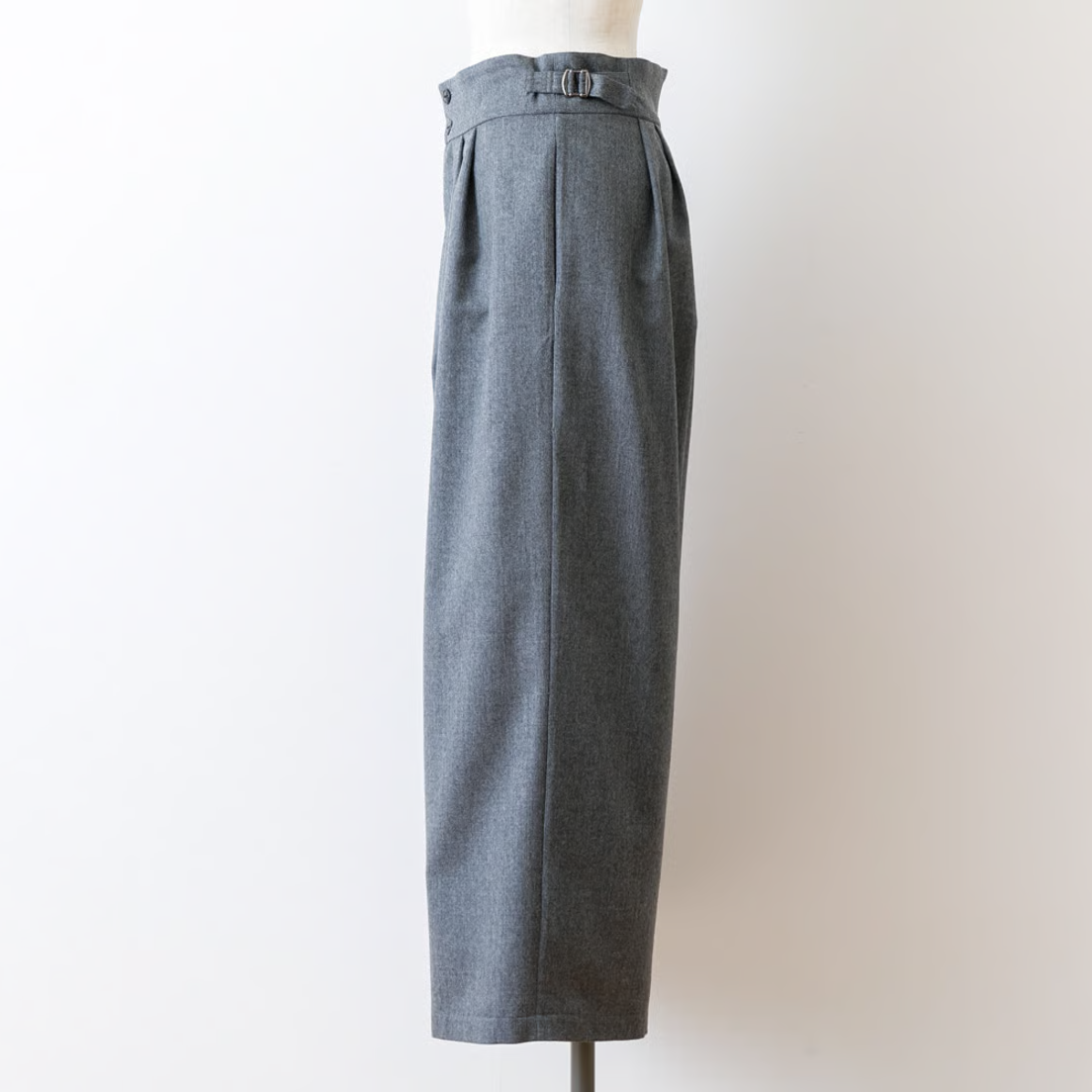 ウエストベルトがあってきちんとした印象ですが、ベルト芯が柔らかいのでお腹を締め付けず、ゆったりするようにデザインしました。