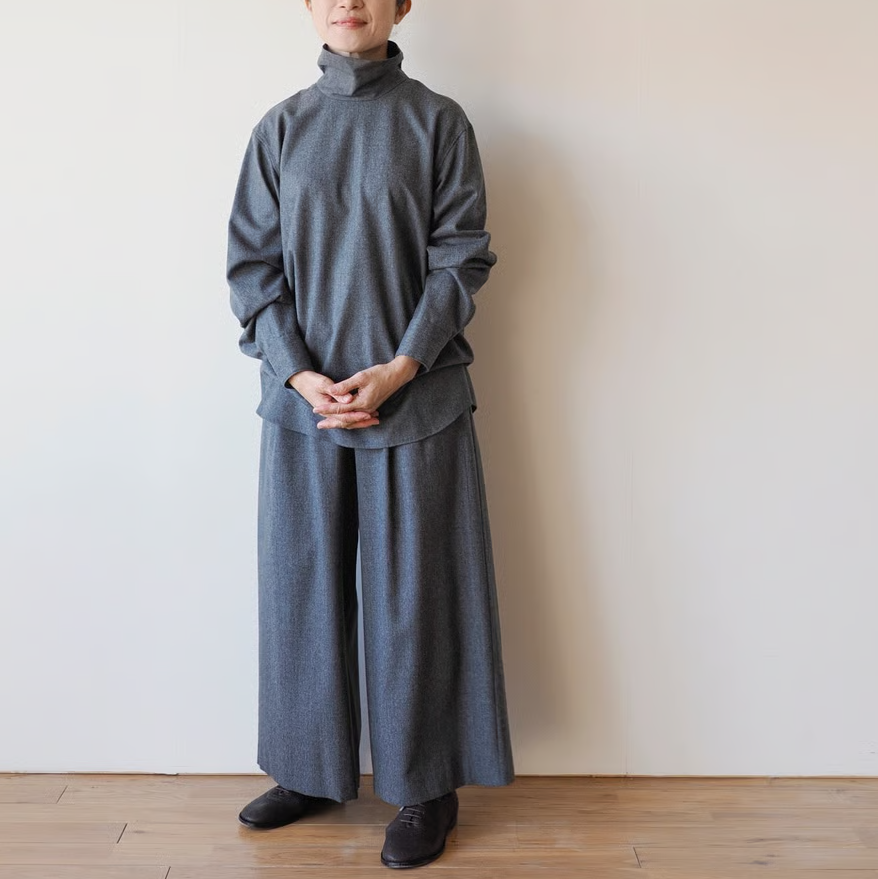 「ウールハイネックシャツ」とセットアップで着るのがおすすめです。