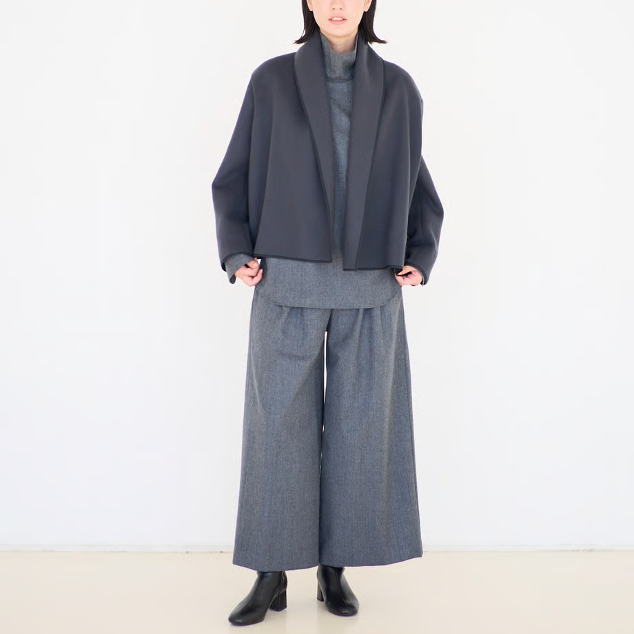 ウールタックパンツと同じ生地なのでセットアップして着ていただけます。